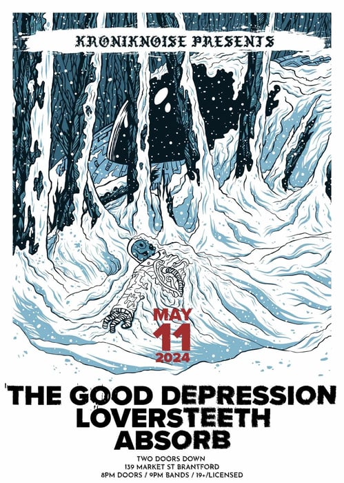 KRONIKNOISE PROUDLY PRESENTS: THE GOOD DEPRESSION, LOVERSTEETH, ABSORB & SKUZZ IN BRANTFORD!! SATURDAY, MAY 11, 2024. @ Two Doors Down Brantford Ontario. 19+ / Licensed 8PM- DOORS 9PM- BANDS Join us at Twos for some of the best heavy music in the world ๐ค๐ฅ๐ค $12 Advanced Ticket $15 at Doors