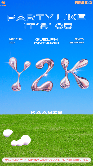 18+ EVENT WHAT'S ALL THE FUSS ABOUT THE Y2K ERA ANYWAY ? NAME: PARTY LIKE IT'S 05 // GUELPH, ONTARIO DATE: SATURDAY, NOVEMBER 11TH TIME: 9PM TO SHUTDOWN THEME: Y2K THROWBACK ***Wear your best retro fits for a night that'll make you wish you could rock those fits every day*** ๐๐๐ข