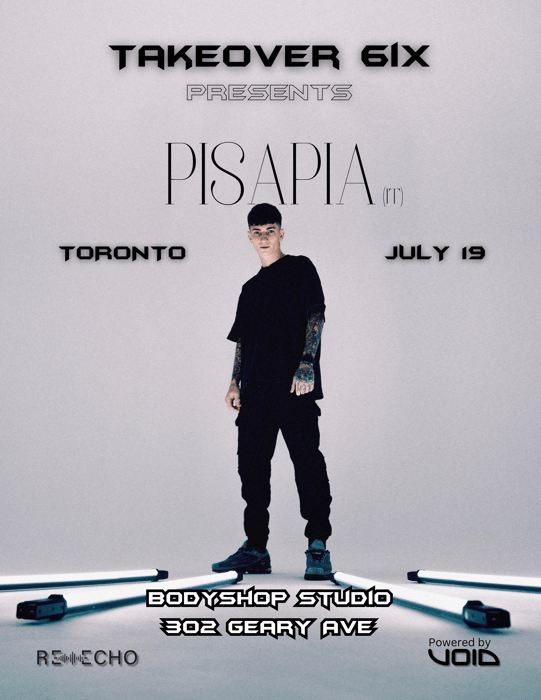 Hailing from Rome, Italy, PISAPIA is a rising star in the Neorave scene. Collaborating with labels like 9X9, NoMercy, Etruria and Taapion his music is known for its relentless beats and uncompromising style. He's featured at major events like Verknipt and Wonderland. Supported by DJs like Amelie Lens, Nico Moreno, 9X9, Shlømo, Lee Ann Roberts. Pisapia continues to push the boundaries of hard techno with tracks such as ‘Hybrid Boom’ and ‘Eyes on Us'. With his electrifying performances and innovative sound, Pisapia is quickly making a name for himself in the world of electronic music. - Doors open at 10pm - Bar available on site (Cash/Card accepted) - Location - 302 Geary Avenue,Toronto